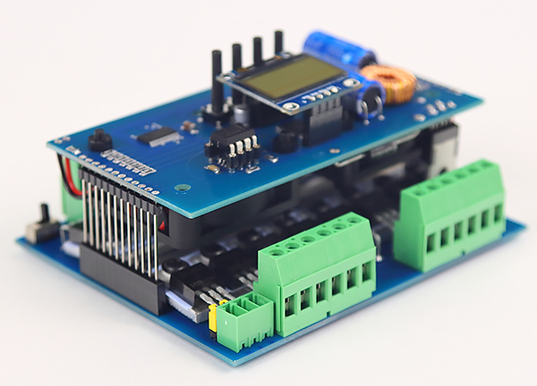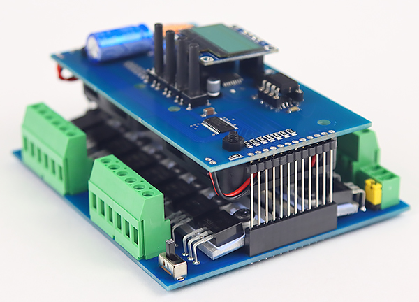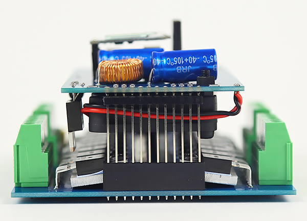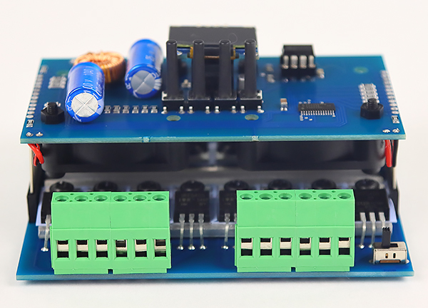 DMX декодер DD-16D имеет два вентилятора 40х40х10 (5В). Это активное охлаждение силовых ключей, установленных на радиаторы. Данные вентиляторы не обеспечивают абсолютное охлаждение, но создают отличный поток обдува воздухом указанных MOSFET ключей, что при должном вентилировании электрошкафа, позволит вам подключать без потерь и перегревах более мощную нагрузку (до 20-25А на канал). Во многих случаях, подключаемая к силовых выходам групп нагрузка, на столько мала, что не требует охлаждения. Для таких случаев справа внизу на плате (справа от "Group-4") расположен микро-переключатель, которым можно отключать или включать вентиляторы охлаждения прибора.